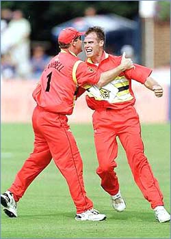 Furthermore, the political situation at home is one of unrest, violence, rigged elections and other instabilities. They have a President who is reckoned to be one of the most corrupt in the world and who is using the national army to further propagate a war in Congo in order to fill his own deep pockets. Several of the players are farmers whose lands are under threat. Yet, they are winning. Granted they were humiliated in the first Test at Lord's. But with everything they've had to undergo, its understandable. From then on, they've been doing well. In the second Test, they had England on the ropes but rain intervened. Ever since, they've been traveling around the country, playing against the county sides and improving with every game. Now, they have taught England and the West Indies, two sides basking in former glory and playing outdated cricket, an abject lesson in the one-day version of the game. Those two wins were not flukes. They were victories by a better team on the day; a team that knew exactly what it had to do and did it most professionally. They were also triumphs achieved with a second string bowling attack - - their three top bowlers are all injured. Remarkable, isn't it? In the first game, the West Indies paid dearly for not being aggressive in the first fifteen overs. They were so slow at the start that despite a run-a-ball fifty from Lara and a 23-ball 36 from Ricardo Powell at the end, they only managed 232. The West Indies also chose to play four specialist fast bowlers and once the Zimbabwean batsman got used to the pace and bounce, it was not hard to bat against them. The fact that Chris Gayle's apology for off-spin tied them down is enough evidence to show that lack of variety in the bowling department cost the West Indies. Zimbabwe, on the other hand, scored at over five an over in their first fifteen overs and played one quickish bowler, four medium-pacers, (all competing to see who could bowl slower) and two left-arm spinners. In the second game, they brought in more variety with the leg-spin of Paul Strang. An inspired move for England threw away a great start to collapse to him. Batsman after batsman either played against the spin or lofted the ball straight down the fielder's throat. From 120-1, England collapsed to 207. In both games, they provided a lesson in batting second. They lost early wickets but then consolidated through aggressive but sensible batting and excellent running between wickets. Once they were back on track, they shifted gears and actually quickened the tempo. In the end, they finished both matches in a canter. Against England, they often batted in terrible light as well.