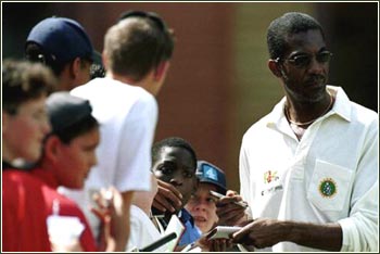 Brian Lara didn't last very long, presumably his mind is on the bigger challenge to come when the West Indies face England in the Third Test Match starting on August 3rd at Old Trafford, Manchester, England. Meanwhile Gordon Greenidge was growing in confidence, even attempting a reverse sweep on his way to 63. Next in was the diminutive Alvin Kallicharan. Still to come were Collis King, and Australian Justin Langer to help the side cruise to victory. But the result had not been important, it was the memories that mattered. In his career, Malcolm Marshall took 376 Test wickets, and altogether took 1,524 wickets at 18 runs each and made 9,863 runs with an average of 24. He is generally regarded as one of the finest and most shrewd bowlers of all time, and has been called 'the thinking man's assassin' for his astonishing ability to make a new ball swing, swerve and leap and to think a batsman out. He started out life wanting to be a batsman, but got so fed up waiting for a bat as a youngster that he decided to try bowling to skittle the other side out a little faster. In many people's eyes he was really an all-rounder. He was also a lover of life and liked to party. Many of the players at the game paid tribute to his talents on the pitch and his character off it. Glenn McGrath: 'I used to sit in front of the television in New South Wales and watch him. He wasn't the tallest of bowlers but he generated a lot of pace, and skidded the ball through. He was, without doubt, one of the best bowlers of all time. He was one of the most intelligent bowlers and one of the nicest guys you'd ever meet off the field. He was hard and tough on the pitch but you wouldn't meet a nicer guy off it.' Shane Warne: 'He was a fantastic person and a fantastic cricketer, so it's a pleasure to pay tribute to him and his family. Sadly I never played a Test against him. but I know how competitive he was on the golf course. He was probably one of the best fast bowlers to play the game, what he could do with the ball was amazing. He was a great guy and he brought out the best in other people.' Brian Lara: 'He was my room-mate on my first West Indies tour to Pakistan and he was always willing to give advice. I have wonderful memories of my time with him and I'll cherish every minute.'
