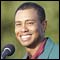 Tiger Woods is watched by his girlfriend Elin Nordegren (l) on the first hole during the third day of the Masters Tournament from the Augusta National Golf Club in Augusta, Georgia.