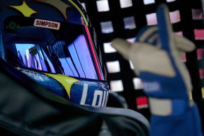 Jimmie Johnson gives his crew the "hang loose" sign during the NASCAR Winston Cup SIRIUS Satelite Radio The Glen at Watkins Glen International Raceway in Watkins Glen , New York.
