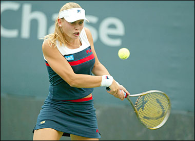 Fifth seed Jelena Dokic of Yugoslavia makes a backhand return against Greta Arn of Germany.