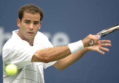 Pete Sampras defeated spaniard Albert Portas 6-1, 6-4, 6-4 in the opening round of the U.S. Open.