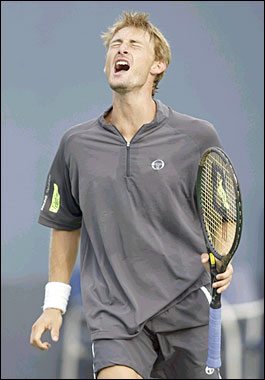 Juan Carlos Ferrero of Spain lost concentration briefly in the second set but still managed to beat Gaston Etlis of Argentina 6-2, 5-7, 6-0, 7-5.