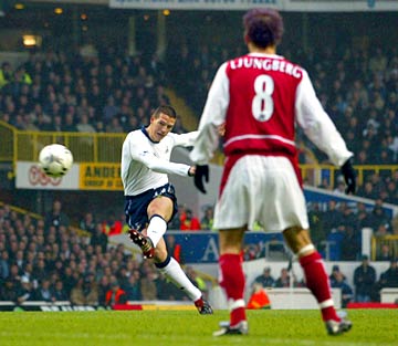 Premiership leaders Arsenal were gifted an 'away' draw by Tottenham goalkeeper Kasey Keller after Christian Ziege (left) scored a stunning goal through a free-kick to put the home side up.