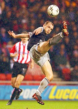 Danny Murphy of Liverpool clears the ball. Liverpool are struggling for form and it is all the more evident as Michael Owen missed numerous chances.
