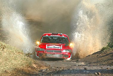Francois Delecour of France drives his Marlboro Mitsubishi Rally Art during the first stage of the Safari Rally, Kenya, round 8 of the World Rally Championship.