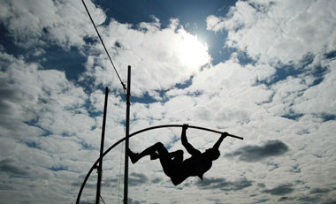 Siloette of the Mens Pole Vault during the Norwich Union European Trials and AAA Championships from the Alexander Stadium, Birmingham.