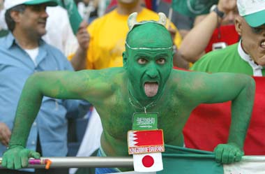 A Saudi Arabia fan during the FIFA World Cup Finals 2002 Group E match between Cameroon and Saudi Arabia played at the Saitama Stadium, in Saitama-Ken, Japan.