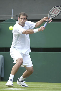 Day OnePete Sampras overcame a lapse in concentration in the second set to beat British hopeful Martin Lee 6-3, 7-6, 6-3 to keep his hopes of lifting an eighth Wimbledon crown alive.Clive Brunskill/ALLSPORT |