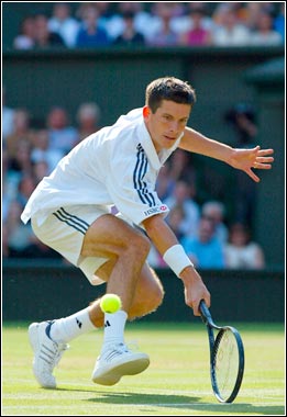 Tim Henman, bidding to become the first Briton to win the men's singles crown since Fred Perry in 1936, recovered from a wretched start to clamber past Australian Scott Draper 3-6, 6-3, 6-4, 6-3.