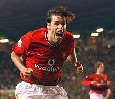 Ruud Van Nistelrooy of Man Utd celebrates after scoring the second goal with a penalty during the