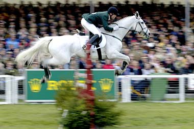 Andreas Dibowski of Germany riding Ginger during the showjumping to claim fourth position on the final day of the Badminton Horse Trials, Badminton.