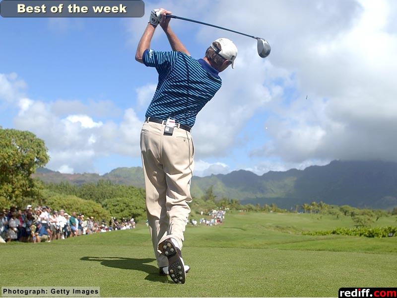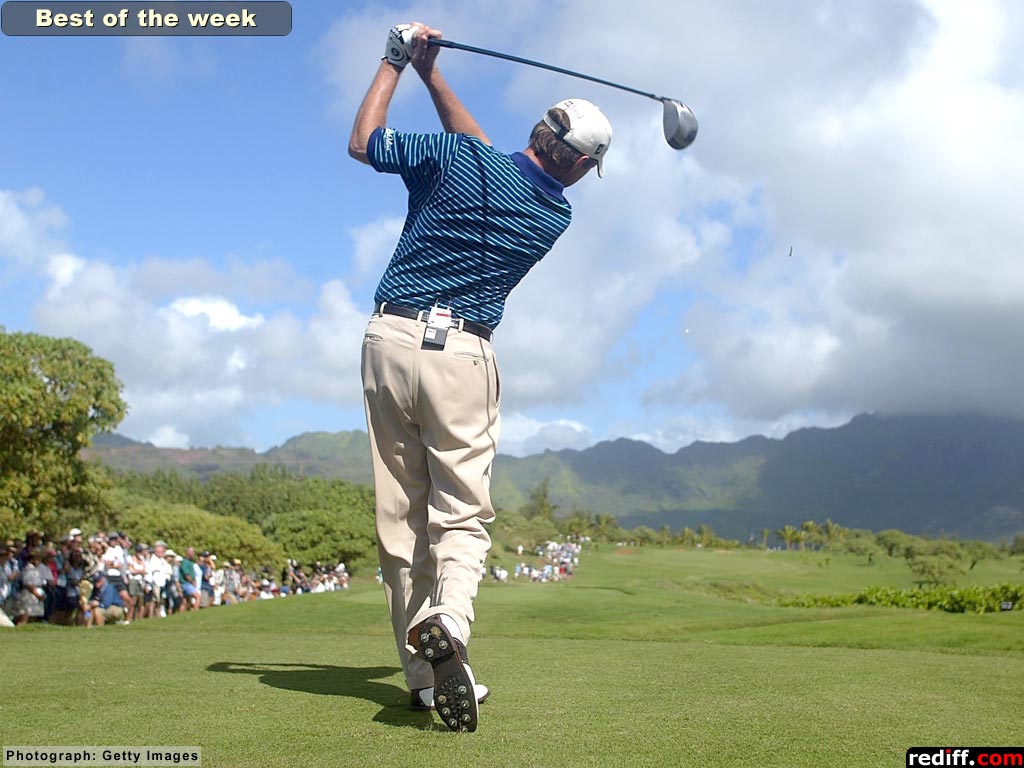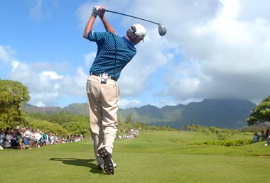 1997 PGA Champion Davis Love III hits his first shot on the 12th hole during the first round of the PGA Grand Slam of Golf at the Poipu Bay Golf Course on Kauai, Hawaii.