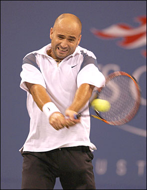 Andre Agassi was in prime form as he romped into the quarter-finals with a 6-2, 6-3, 6-3 demolition of Jan-Michael Gambill.