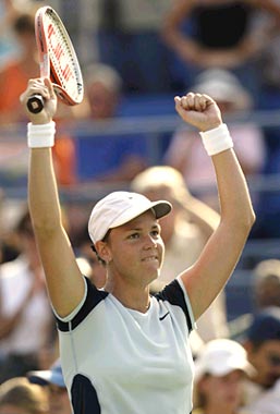 Fourth seed Davenport overcame a scrappy start to beat Russia's Elena Bovina 3-6, 6-0, 6-2.