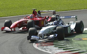 Williams and Colombian Juan Pablo Montoya, who started on pole after clocking the fastest qualifying lap in Formula One history, could only watch as the red Ferraris sweept past as the crowd stood and roared their delight.