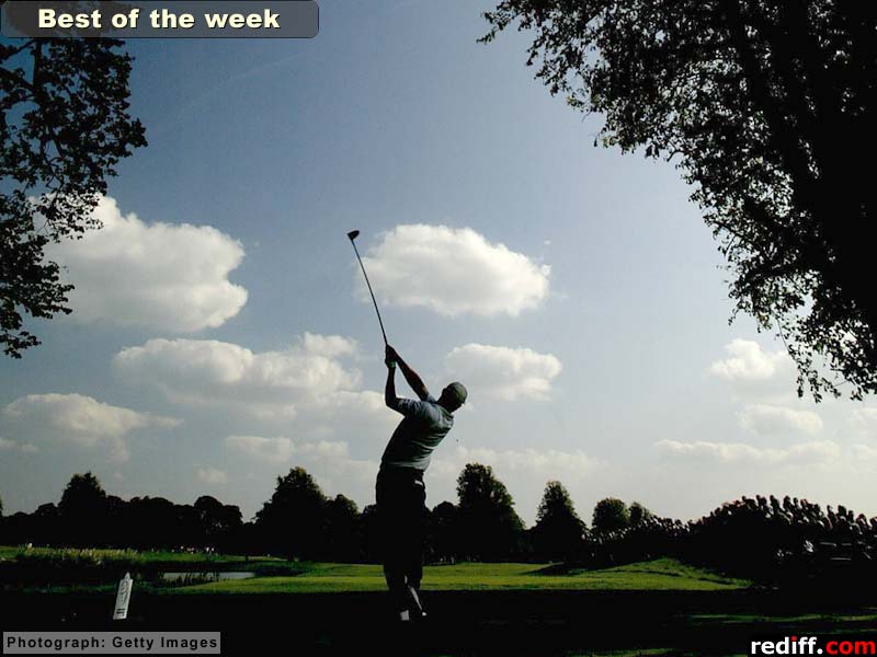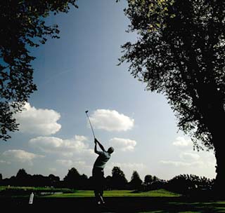 Padraig Harrington of Ireland hits his tee-shot on the 17th hole during the first round of the American Express Championship at Mount Juliet Golf Club, Kilkenny, Ireland.