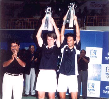 Julian Knowle of Austria and Michael Kholmann of Germany stunned fourth seeds Frantisek Cermak and Leos Friedl of the Czech Republic 7-6, 7-6 to lift the doubles title.