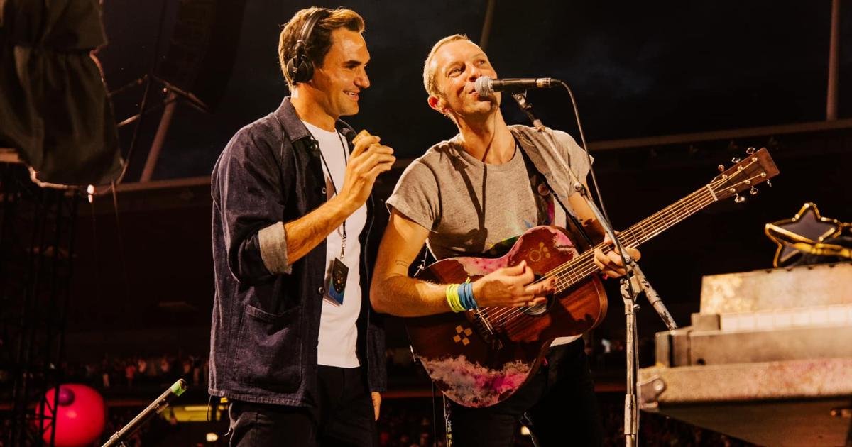 The tennis legend shared the stage with frontman Chris Martin during Coldplay's concert in Zurich on Sunday.