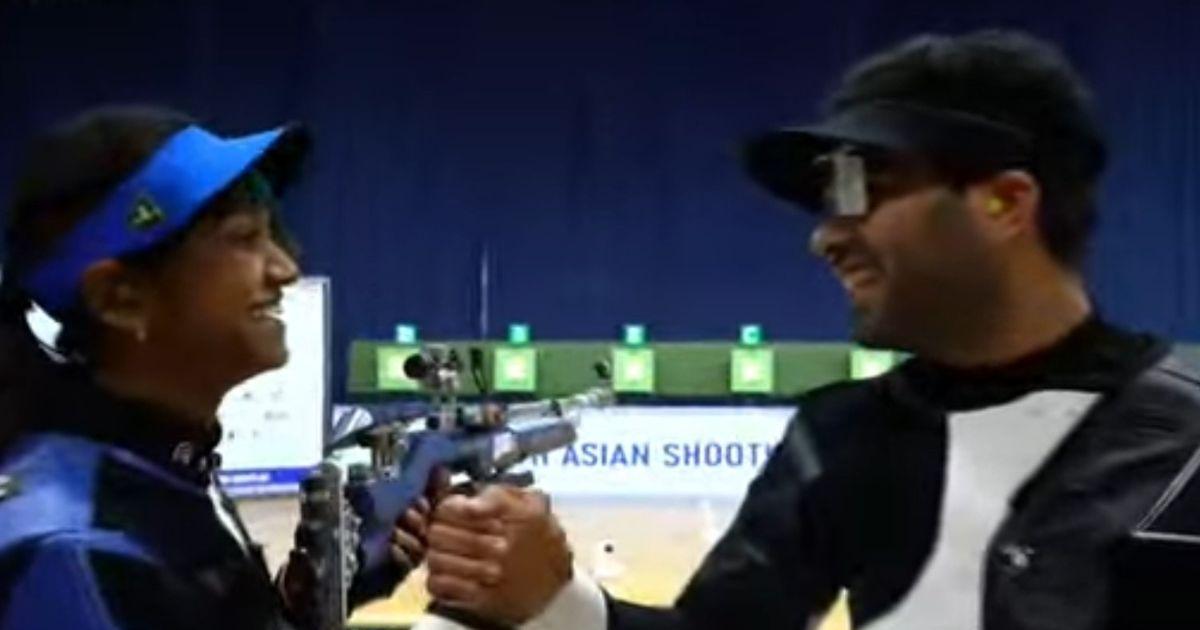 The Chinese pair was leading in the initial round but the Indians, who faltered early with shots of 9.5 and 10.1, made a stirring comeback in the later rounds to claim the gold.