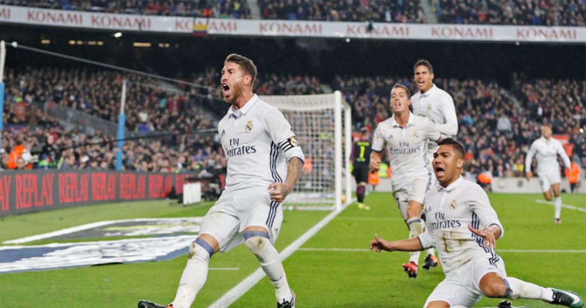 Sergio Ramos again proved Real Madrid's last-gasp hero by heading a 90th-minute equaliser to force a 1-1 draw at champions Barcelona and preserve his side's six-point lead at the top of La Liga on Saturday.