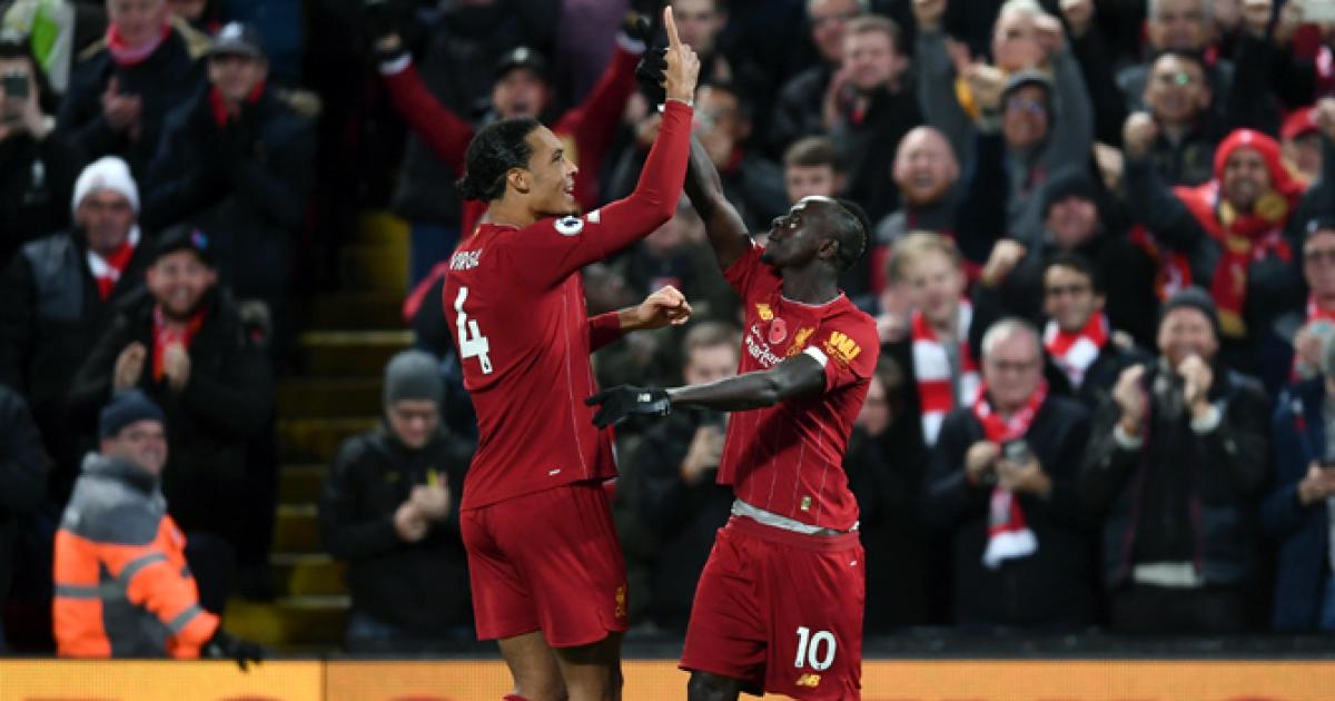IMAGE: Sadio Mane, right, celebrates after scoring Liverpool's third goal with teammate Virgil van Dijk. Photograph: Laurence Griffiths/Getty Images
