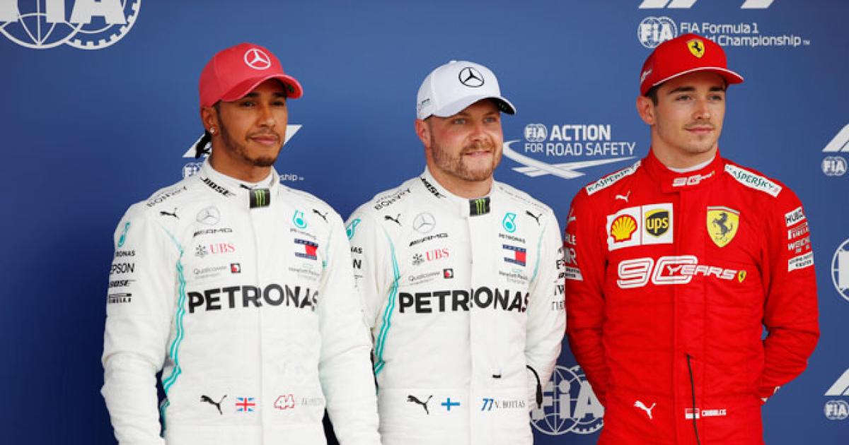 Ferrari's young Monegasque Charles Leclerc will share the second row with Red Bull's Max Verstappen, who won the previous race in Austria where the two 21-year-olds clashed on track while fighting for victory in the closing laps.