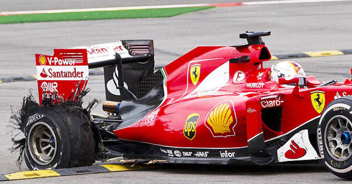 Vettel's dramatic blowout, just after sweeping through the fearsome Eau Rouge, followed compatriot Nico Rosberg's in Friday practice, a failure Pirelli blamed on an external cut rather than anything structural.
