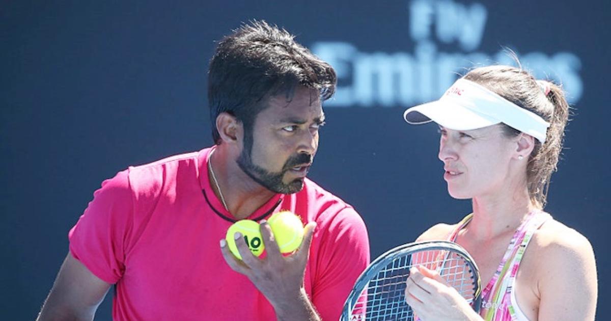 In the second set, Paes and Hingis were broken in the fourth game to trail 1-3. The Indo-Swiss pair were 2-5 down when Hingis served only to be broken by the Australians, who sealed the match comfortably.