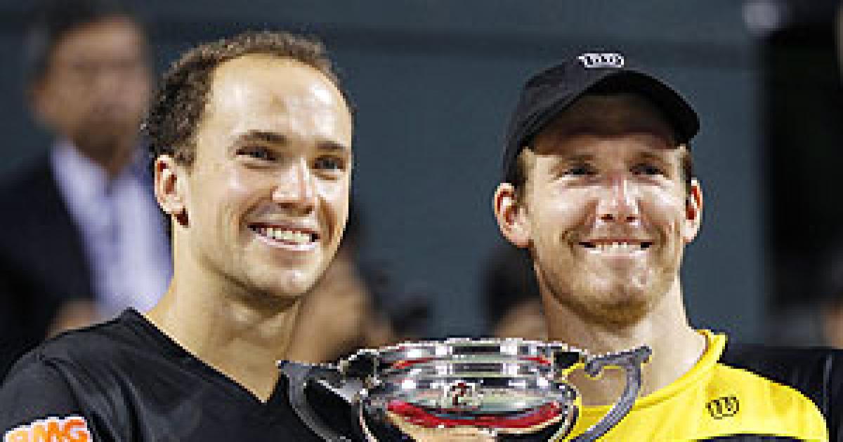 Alexander Peya (right) of Austria and Bruno Soares of Brazil pose with their trophy after winning the men's doubles finals match against Leander Paes of India and Radek Stepanek of the Czech Republic at the Japan Open on SundayThe fourth seeded Austrian-Brazilian pair defeated top seeds Paes and Stepanek 6-3, 7-6 (5) in an hour and 46 minutes in the $1,280,565 hard court event to win their second ATP World Tour doubles titles in as many weeks.