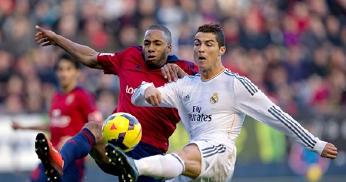 Image: Cristiano Ronaldo (right) of Real Madrid CF competes for the ball with Jordan Loties (left) of CA Osasuna during the La Liga match