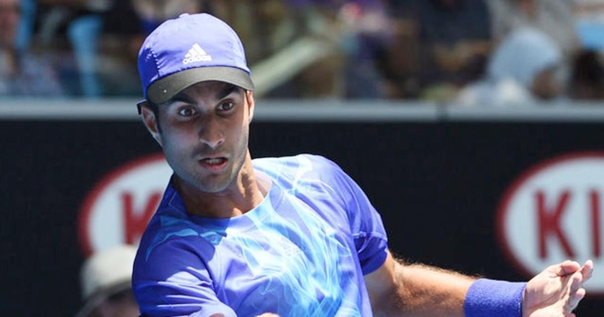 India's Yuki Bhambri hits a return. Photograph: Athit Perawongmetha/Reuters