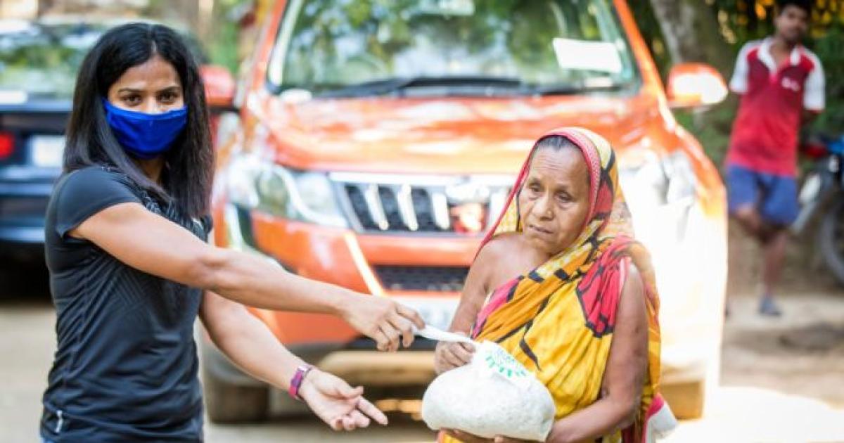 Contributing in the fight against the Coronavirus pandemic, top Indian sprinter Dutee Chand drove down nearly 70 km from Bhubaneswar to her village to distribute food packets.