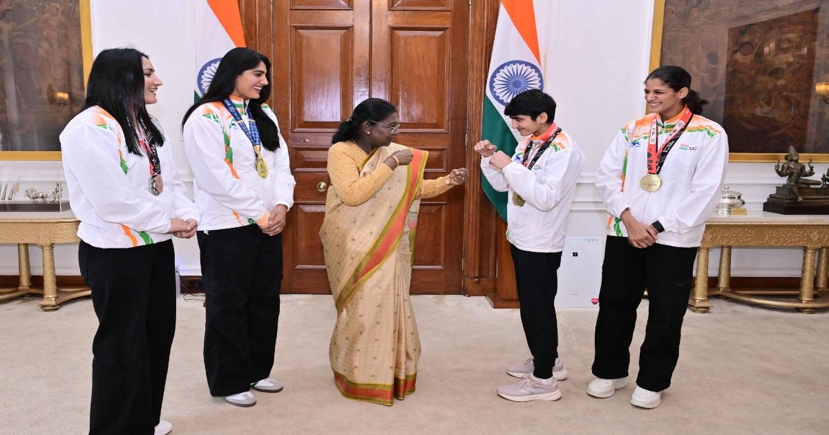 President Droupadi Murmu on Wednesday hosted the Indian women boxers who made the country proud at the 2025 World Boxing Championships in Liverpool.