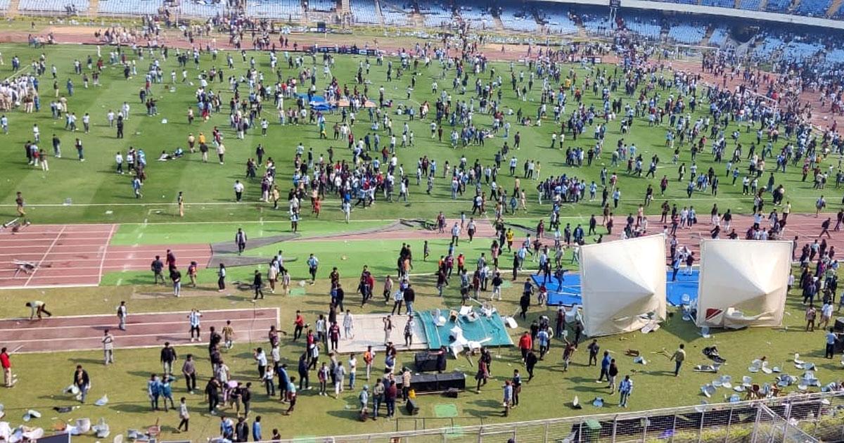 Fans, who had paid between Rs 4,500 and Rs 10,000 for tickets to watch the Argentine star, hurled bottles and damaged fibreglass seats, forcing the police to intervene as they struggled to bring the situation under control.