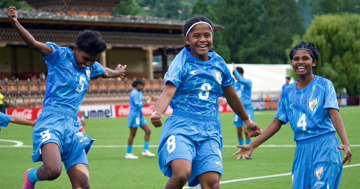 Besides Kumari's (53rd minute, 61st, 73rd) stellar performance, Abhista Basnett (23rd, 89th) scored a brace while Pearl Fernandes (71st), Divyani Linda (77th), and Valaina Jada Fernandes (90+2) were on target. India led 1-0 at half-time.