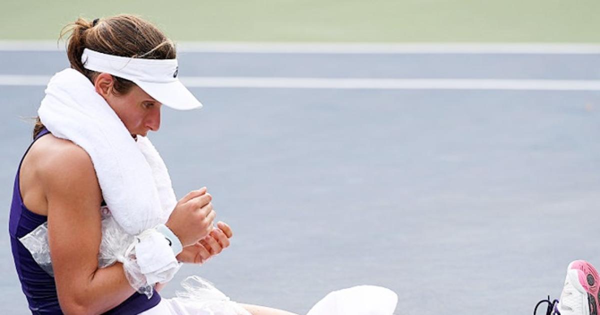 Konta was leading by a set but serving at set-point down in the second when she suddenly dropped to her knees, shaking and struggling to catch her breath as temperatures neared 88 degrees Fahrenheit (31 degrees Celsius).