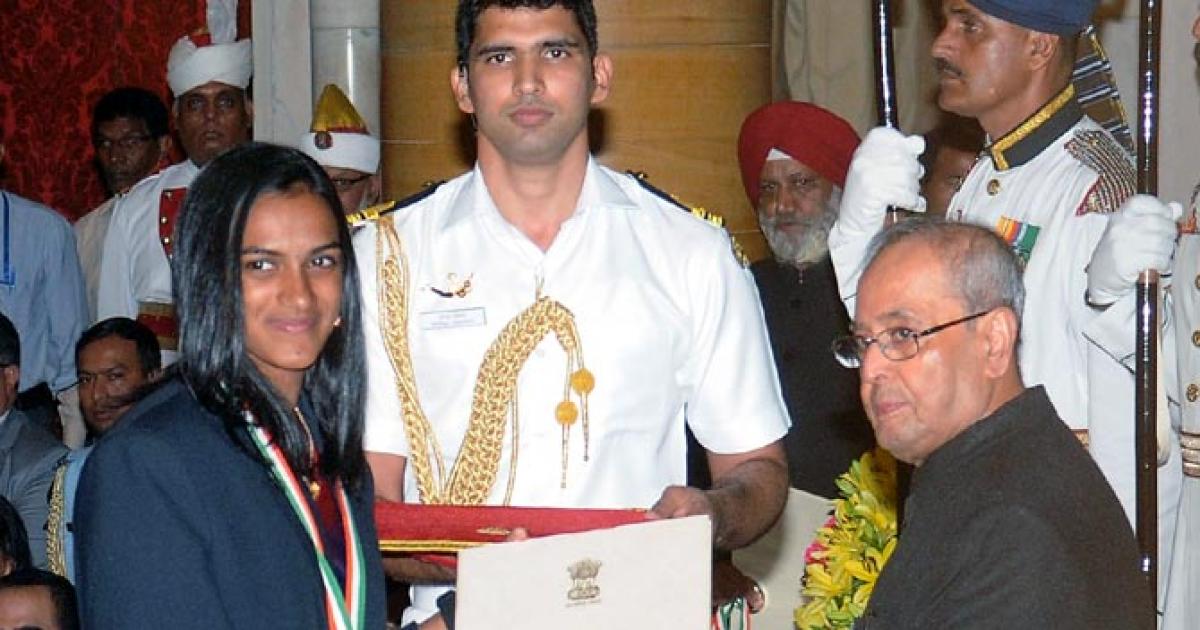 Cricketer Ajinkya Rahane, who was also selected for the Arjuna, missed out on the ceremony as he is in the United States with the Indian team for a Twenty20 series against the West Indies.