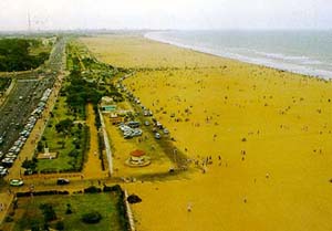 Ritzy, Glitzy Madras ... the city is groovin' Ravi Srinivasan The sky was turning a pale cobalt blue. A dash of orange, and patches of grey clouds lingered along the horizon. Fresh salty air blowing from the sea was rejuvenating my lungs. Sea waves were gently crashing on the shore. I gingerly trod along the water's edge to avoid trampling the small sea crabs, and gazed at the enormous lighthouse that was beaming beacons of yellow light to the oncoming ships in the Bay of Bengal. It was almost sunrise. Madras’ Marina seashore had started to bustle with activity. Fishermen were getting ready to push their catamarans into the ocean. Some of the fishermen were untangling their fishing nets. Some were busy giving instructions to other fishermen for their early morning seaward journey.