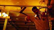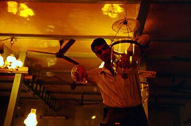 Caretaker Moshe Avaskar, who is filling coconut oil in the silver lamp, speaks fluent Marathi. The synagogue has a Marathi-Jewish calendar.