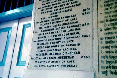The prosperous-looking Magen Hassidim Synagogue, also belonging to the Bene Israel community, just down the street at Madanpura, sports a list of benefactors with Maharashtrian surnames… Rebeccabai Bamnolkar. Ezra Samson Medhekar. Shimon Digodhkar…