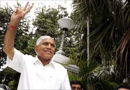 Your party is the single largest party in the state. But you are the last person to get to sit on the chief minister's chair. And that historic moment -- when your party comes to power for the first time in South India -- lasts a miserly seven days. What is your name? B S Yeddyurappa.